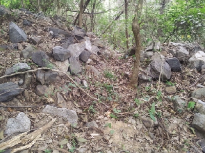 표고 214m 주봉과 서남쪽 공짜기를 감싸는 석성. 산탁에 의해 축성, 일부 협축 흔적이 살펴짐. 대부분 붕괴되었고 북쪽성벽 일부가 잘 남아있는데 폭은 4m정도이고, 잔존높이는 2m내외임. 성내에서 격자문, 어골문, 집선문계 평기와 및 토기편 등 수습됨.
